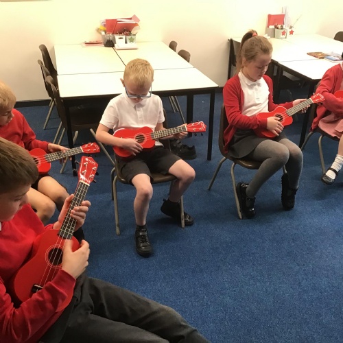 Music is incorporated into the Growth enrichment programme, where children have the opportunity to learn to play a tuned instrument such as the ocarina in KS1 and the Ukulele in Lower KS2.