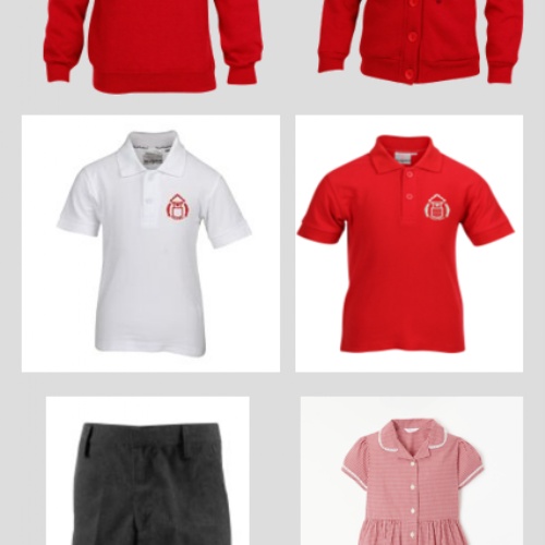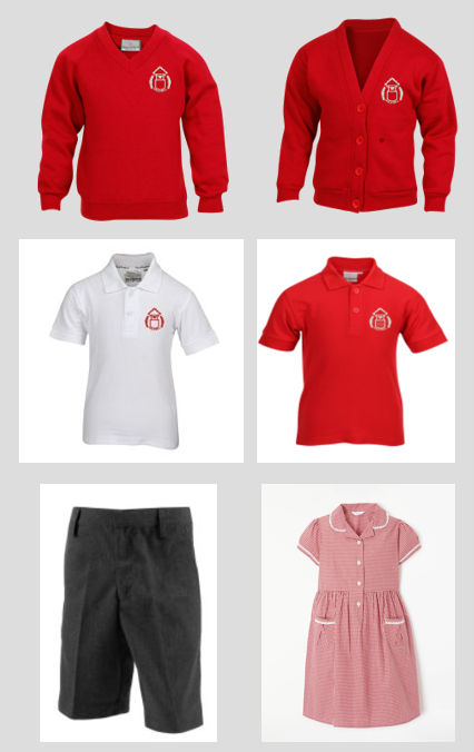 Children can also wear supermarket-purchased uniform that does not have the Hollywell logo. This can be plain red/white polo shirts, red school jumpers and cardigans.
